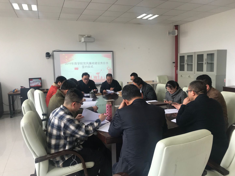 4月16日上午,pa电子官方网站2019年党风廉政建设责任书签约仪式在商院楼512会议室举行,全体党政领导班子成员、三级机构负责人及各教研室主任参加了会议。