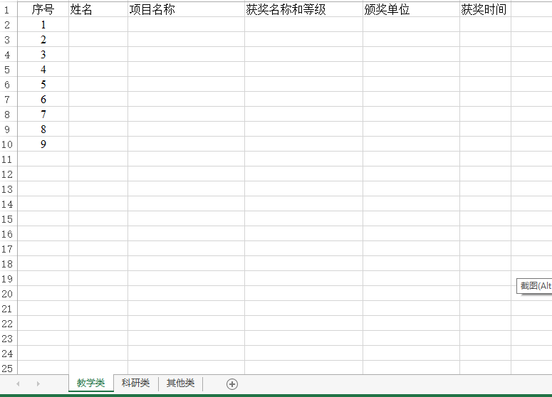1)制成EXCEL在线文档(老师和学生分开),其中再设教学类、科研类、其他类,由获奖老师和学生自行填写,每月或每两月开放几天
