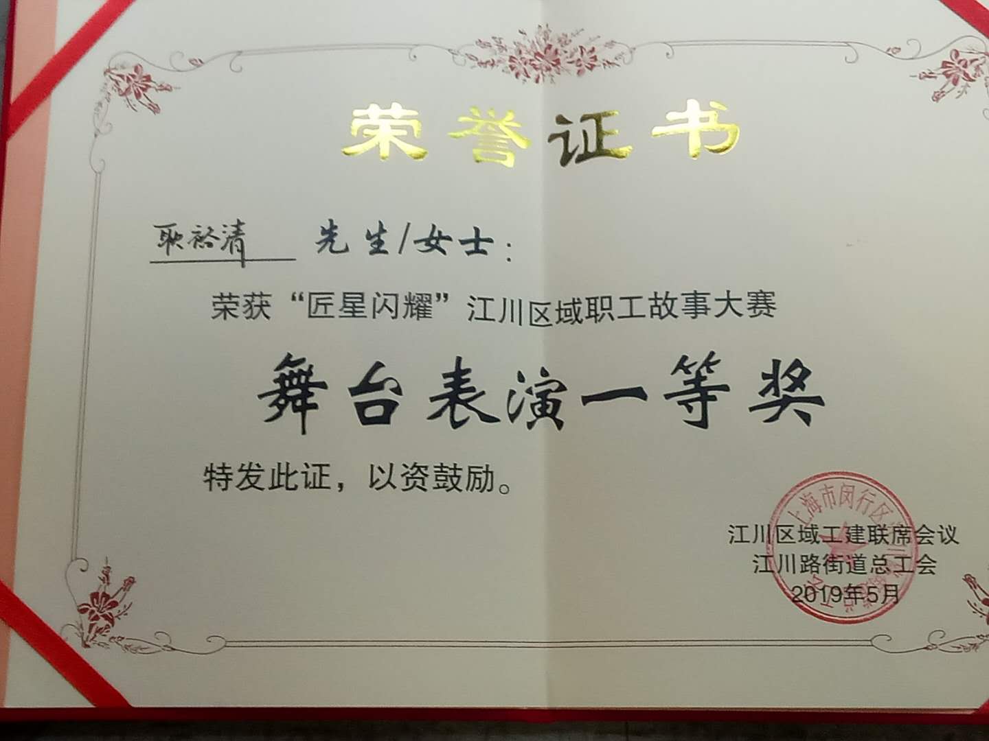 为深刻认识培育当代工匠、弘扬传承工匠精神,2019年5月8日下午,由江川区域工建联席会议、江川路街道总工会举办的“匠星闪耀“2019年江川区域职工故事大赛总决赛在江川路街道党建服务中心拉开帷幕。pa电子pa电子官方网站青年教师耿裕清代表学校工会参与并获得一等奖。