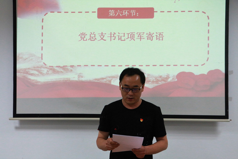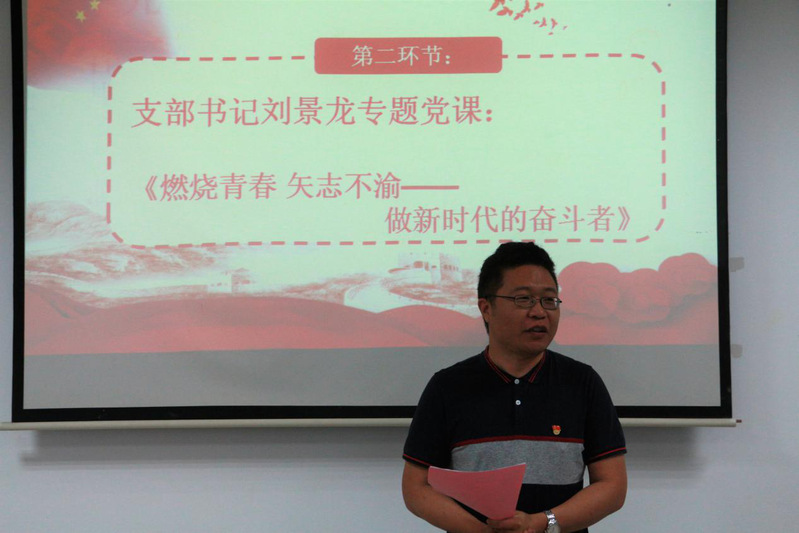 接着第八党支部书记刘景龙为同志们上最后一次党课,主题为《燃烧青春,矢志不渝——做新时代的奋斗者》。刘景龙书记引经据典,一件件小事、一个个故事娓娓道来,从而引申出深刻道理。他指出,作为光荣的共产党员,思想上要跟党走,生活中要严格要求自己,工作中要“影响一批人,带动一批人”,要经常关注学校和社会的发展,牢记党和人民赋予我们的历史责任。希望毕业生党员在工作和生活面前要有自信心,做事有决心,奋斗是初心,让青春绽放奋斗的光芒。