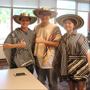 Colombia's clothes have local characteristics. Large hats and black-and-white coats soon attracted the students' attention. With the help of Colombian students, the students smoothly put on their clothes and took beautiful pictures.