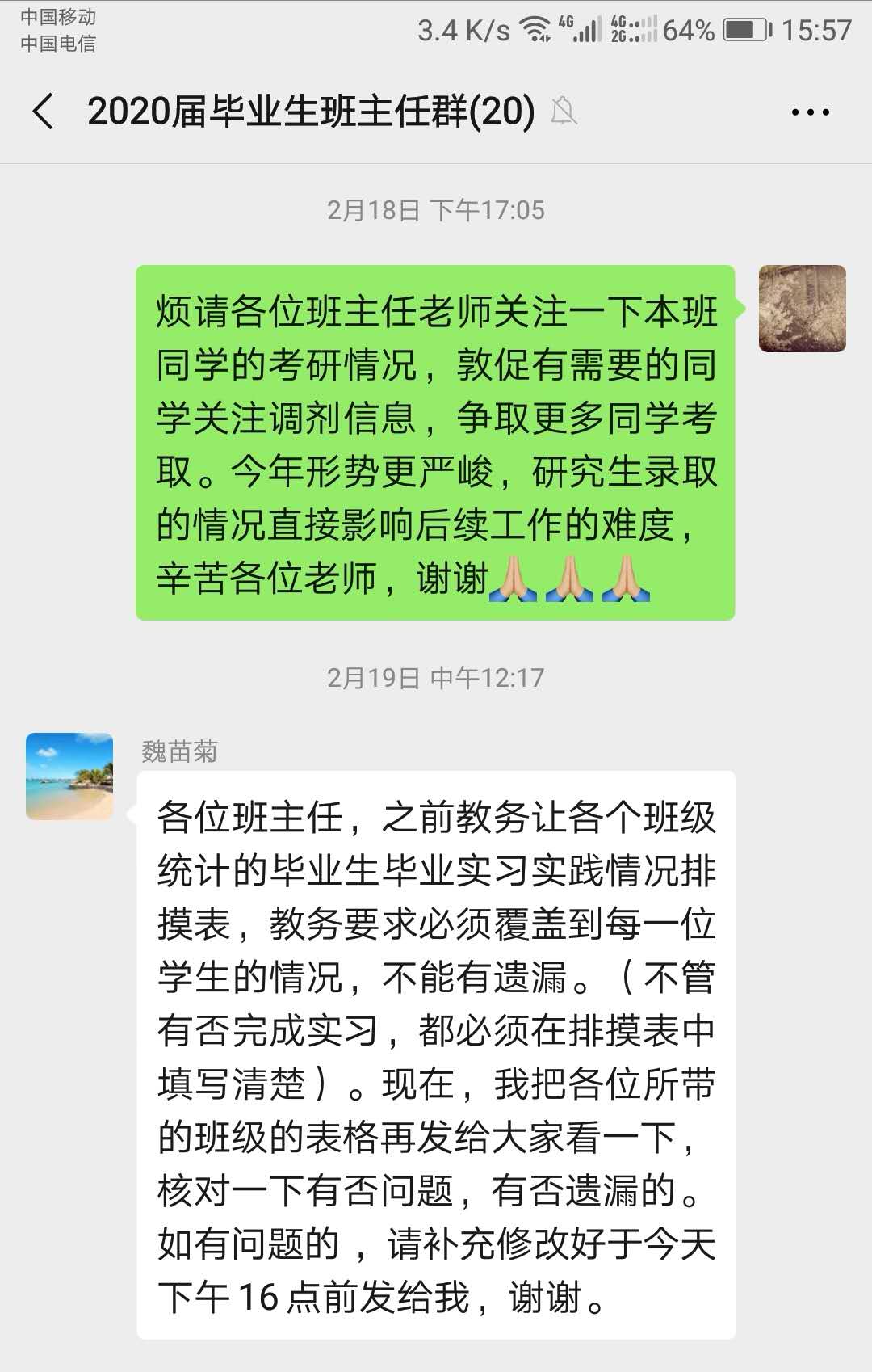 疫情之下,为确保应届毕业生顺利毕业,学院就业班主任点对点、一对一帮扶到位,帮助毕业生梳理课程学分,抓住最后的加课机会。辅导员陈庄瑜所带班级有一位延期毕业学生,为了确保该生今年顺利毕业,陈老师仔细分析他的学分完成情况,主动指导学生选课,给予正面支持和鼓励,并以此为案例希望其他毕业生引以为戒,提前做好毕业规划。