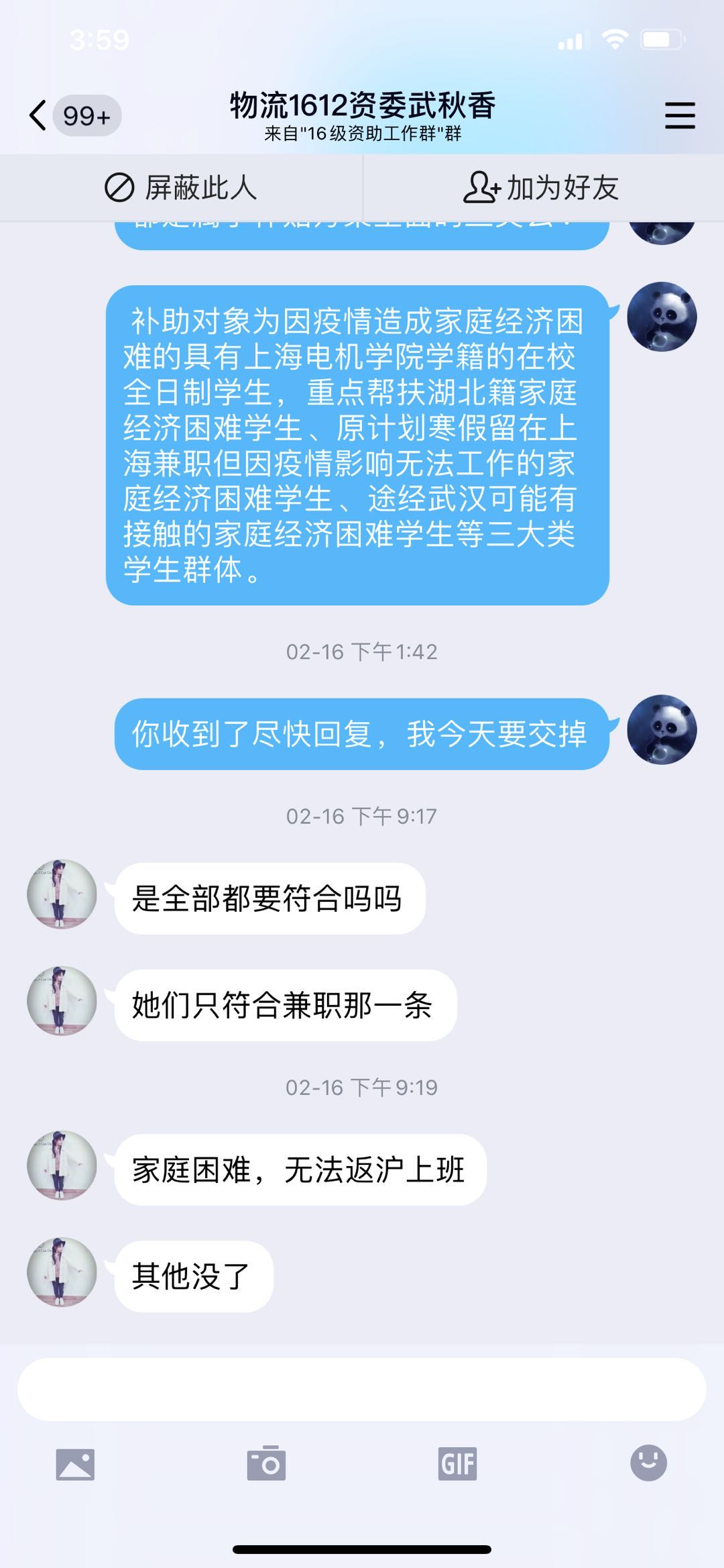 作为学院负责资助工作的辅导员张鹂,在疫情期间,坚持居家办公。并在疫情爆发最严重的时期,及时排摸pa电子官方网站2800多名学生中因受疫情影响需要资助、需要帮助的同学。在了解每一位学生的状况之后,及时上报并发放困难补助,帮助每一位学生,每一个家庭渡过这次难关。资助工作在疫情期间是一项丝毫不能松懈的任务,只有精准的掌握每一位同学的生活情况,才能将资助工作做的更加细致,更加彻底。在做好各项资助工作的同时,她不忘积极宣传国家政策,挖掘资助育人成果也是必不可少的。在受资助的同学中,不乏有很多积极向上,并为这次防疫工作尽自己的一份力的同学。主动挖掘,积极宣传,把榜样的力量扩散到每一位同学的思想中,也是资助育人的关键。让我们共同努力,战胜疫情!