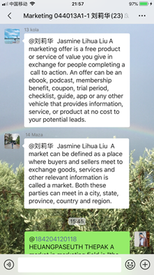 6、刘莉华、韩继坤等老师本续期承担留学生的课程,留学生分布在不同国家,存在时差、国内的学习平台无法使用等问题。几位老师克服困难,采用PPT录播上课、翻转课堂等形式,保证留学生的学习。为了加强留学生的学习效果,教师们在微信群上针对教学章节内容为每个学生指定问题,并与其讨论。