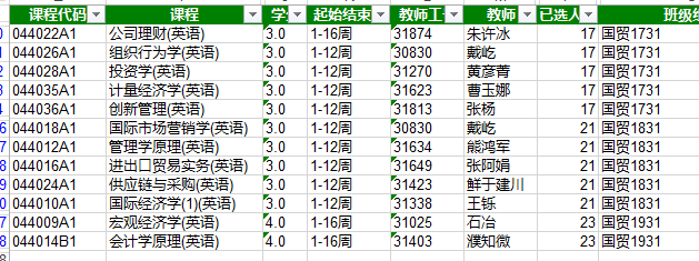 i. (同上学期做法,由刘景龙老师将各位任课老师拉入班级群,任课老师再做相应通知和安排),具体涉及的课程及老师如下