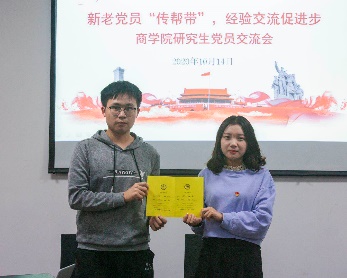交流结束后,新老党员根据个人科研和兴趣爱好等分成几个帮扶小组,开展“传帮带”结对仪式,共同签署承诺书,互相督促完成“四个一协议”:协议内容为课程学习助力一次,论文问题研究一次、科研研讨会一次、社会实践一次。营造以老带新、以新促老、相互促进、共同提高的学习氛围,真正做到“传”出智慧、“帮”出成长、“带”出成果,不断提升学院研究生综合素质。