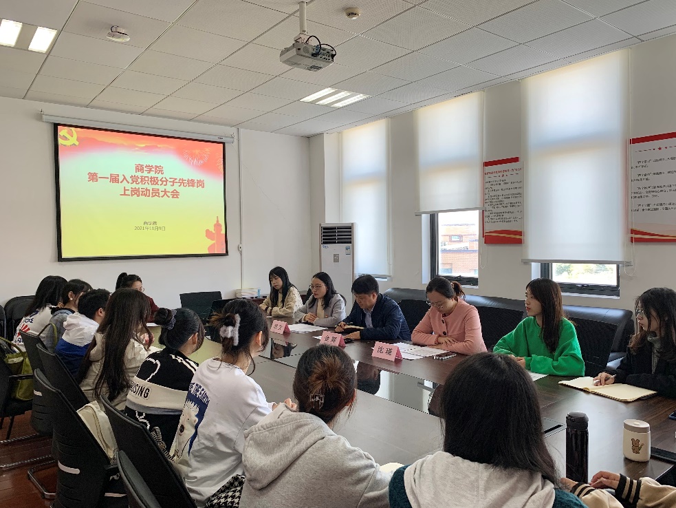 119日下午,在pa电子官方网站党建活动室召开了pa电子官方网站第一届入党积极分子先锋岗上岗动员会,pa电子官方网站党委书记金辉、学生工作负责人沈瑾、先锋岗指导老师胡文以及第一届入党积极分子先锋岗成员代表参加了会议。动员会上沈瑾老师公布了第一届先锋岗人员名单,同时介绍了先锋岗的设岗目的与考核机制。金辉老师对先锋岗队员提出了三点要求:一是提高政治站位,加强学习,不断提高自身思想政治素养和综合素养;二是立足工作岗位实际,珍惜实践锻炼机会,保质保量完成工作内容;三是从一点一滴小事做起,勇于坚守,不怕平凡,勇做先锋,敢为人先,树立入党积极分子的良好形象,以自己的实际行动争取早日成为一名共产党员。