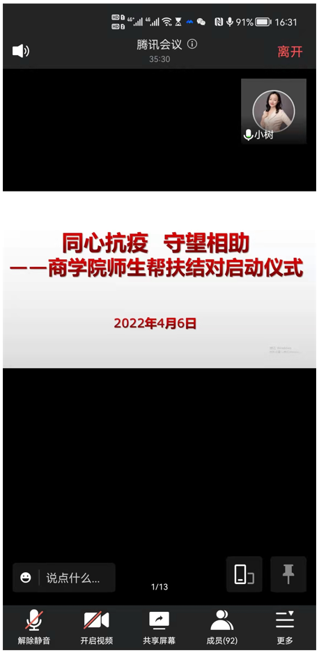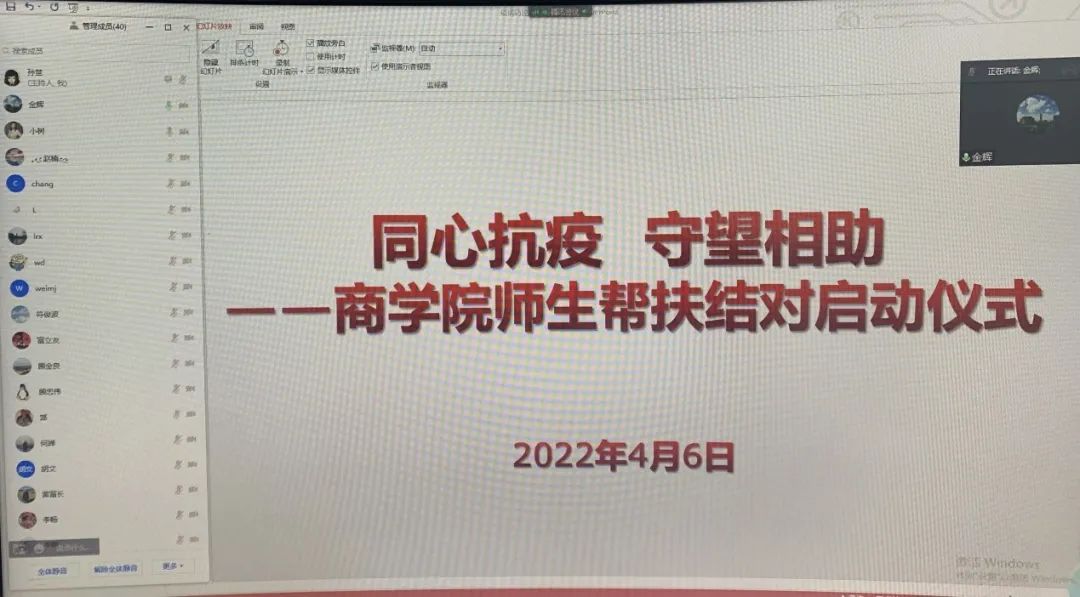为运用好党史学习教育成果,深入持续推进“我为群众办实事”活动,全面关心好学校准封闭期间学生的学习、生活和成长,4月6日下午,pa电子官方网站党委召开“同心抗疫 守望相助——师生帮扶结对启动仪式”活动,学院党政班子成员、三级机构负责人、教研室主任、党支部书记及支委、教授代表、民主党派代表,少数民族同学代表、家庭经济困难学生代表等参加启动仪式,会议由党委副书记、副院长沈瑾主持。