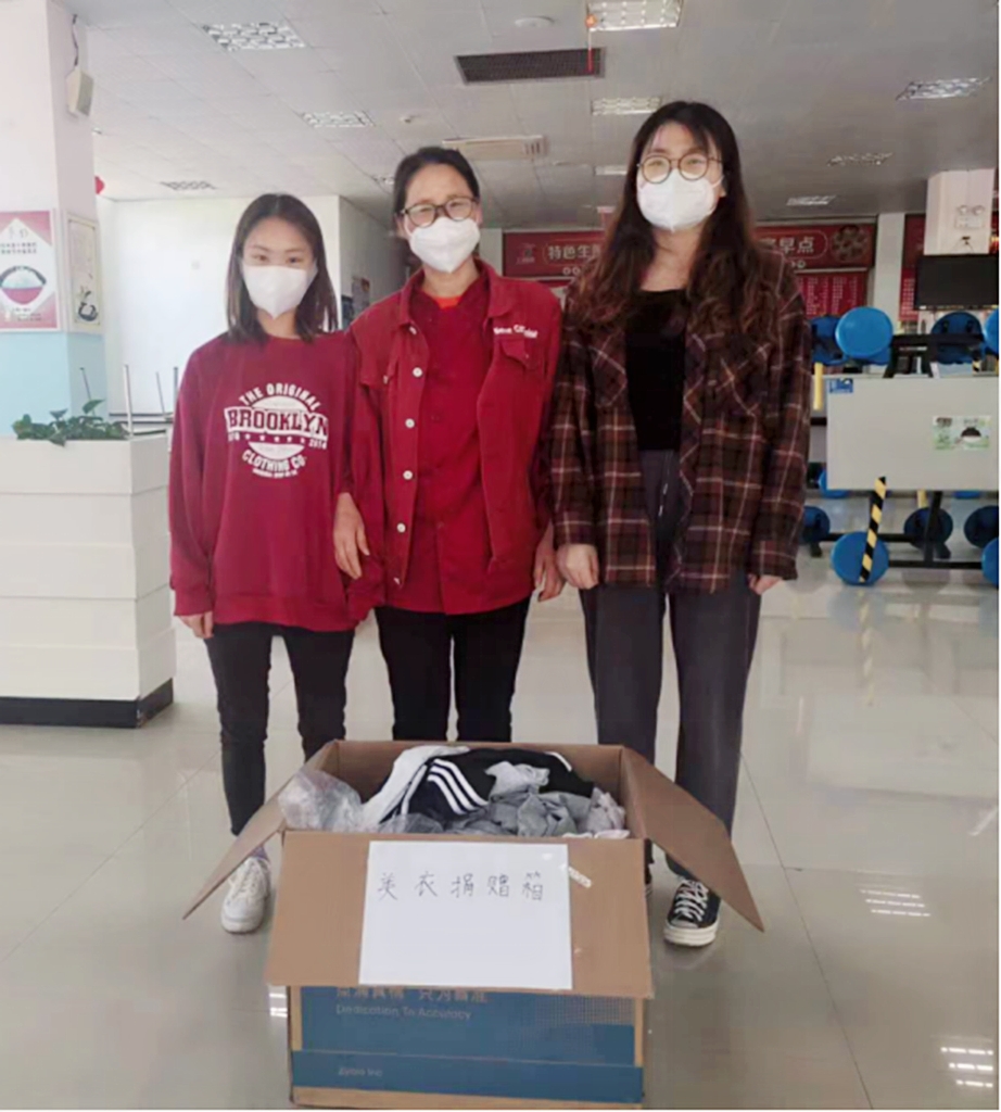 顾经理代表全体后勤员工表达了由衷的感谢。她说:“我们所爱护的是一群心善人美的孩子,特别感谢这群孩子以及负责的老师们!”学生代表郭宇倩和袁梦说:“当同学们排队做核酸检测,在宿舍上网课时,食堂阿姨离开了自家的厅堂,来到了学校的食堂,‘洗手做羹汤’。然而,疫情防控是一场持久战,她们来的如此迅速,只携带了简单的行囊。如今,五月的骄阳如约而至,食堂阿姨依旧厚重衣服傍身。我们希望在母亲节之际为阿姨们做一些自己力所能及的事!希望能用这些‘美衣’来表达我们对阿姨的感激之情。”