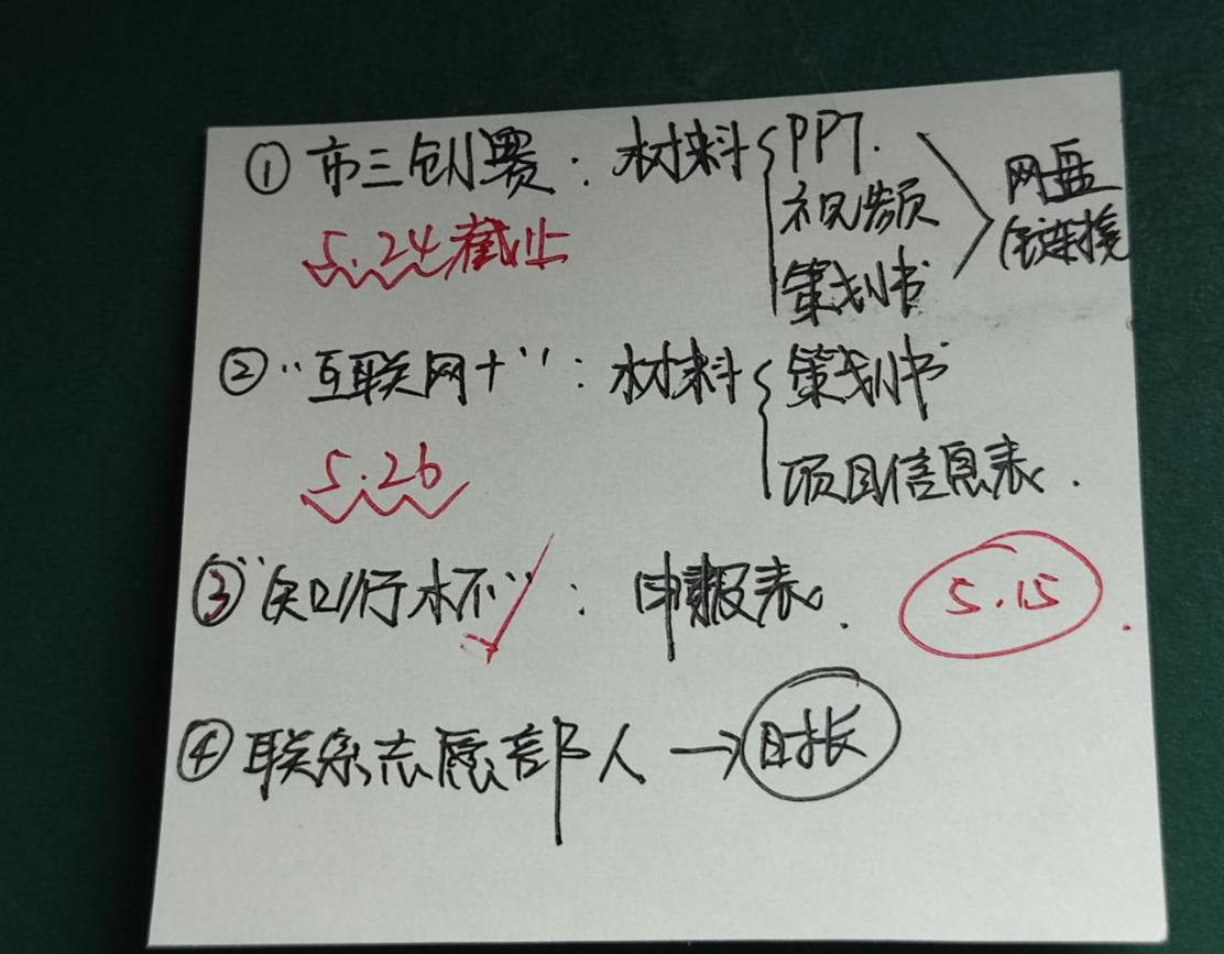 与此同时,四月底,“互联网+”以及上海市大学生“知行杯”社会实践大赛的初期报名也如期到来。白玛拉卓为了高效的完成每一项任务,她经常把任务写在小纸条及备忘录里,确保在规定时间内完成。她说:“以前学姐们带我做项目的时候,会跟我讲她们当时也会用这种方法把项目的每一项工作完成好,也会为我分享她们当时为项目付出的经历。如今我将以队长的身份带领团队参赛,我真的很荣幸,我也会尽自己的努力把接下来的任务完成好,向姐姐们学习,做好传承。”