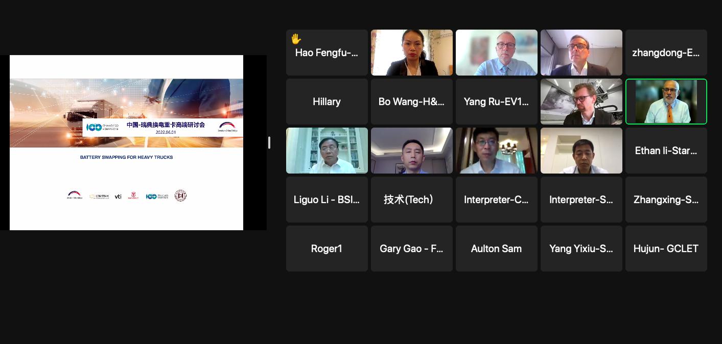 此次中瑞“换电重卡的技术、应用与商业模式”线上主题研讨会于61日召开,由pa电子斯德哥尔摩海外中心与中国电动汽车百人会联合举办。