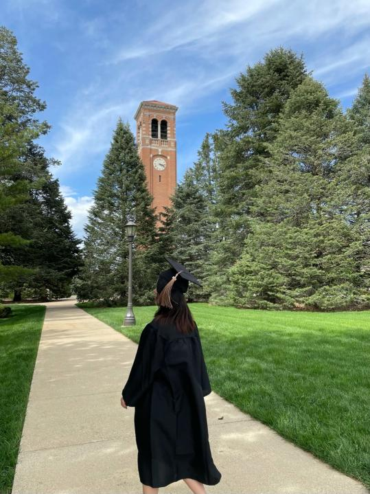 Jinbeini, a student of international trade and economics of Shanghai Institute of electrical engineering in 2018, went to the United States to study in August 2021 and now graduated from uni's marketing: advertising and digital media major.
