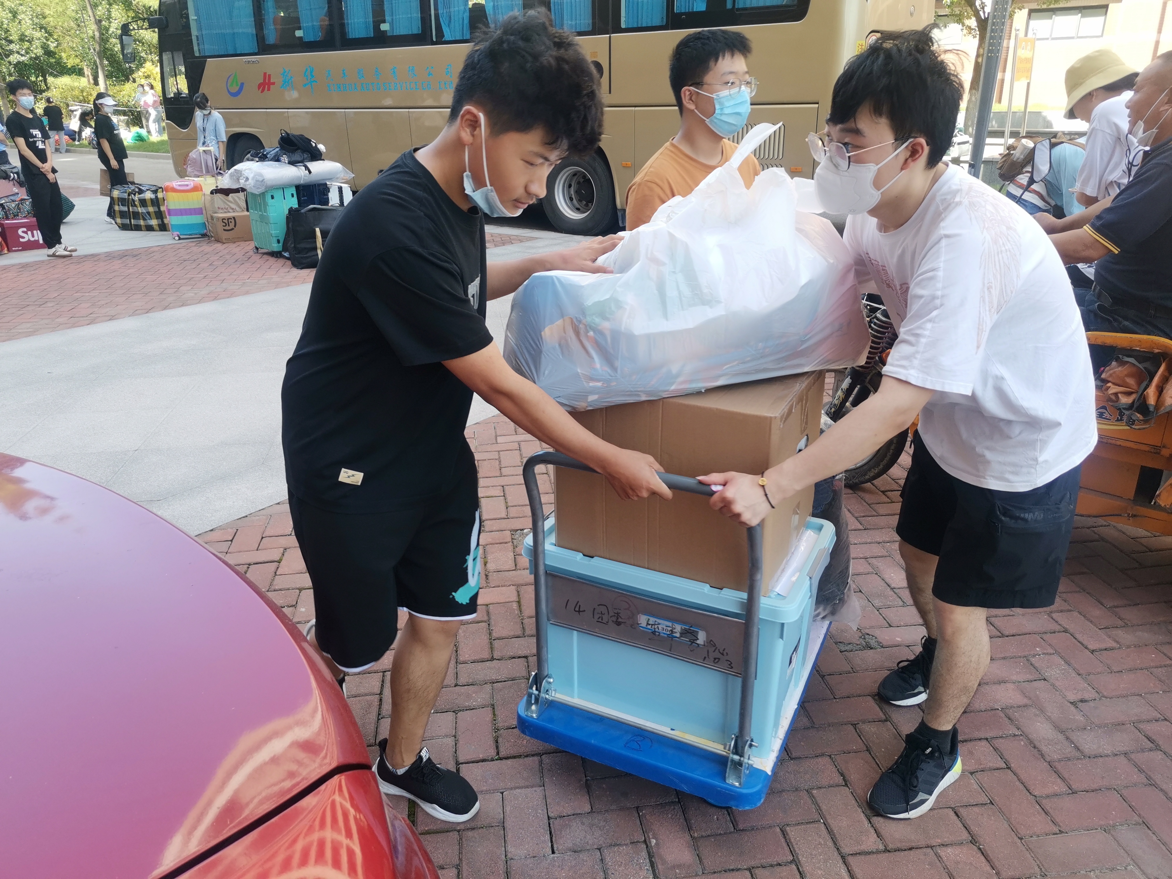 跨校区搬迁是该项工作的“重头戏”。在学校总务部、学生工作部等相关职能部门的支持和帮助下,pa电子官方网站闵行校区工作办公室组织2021级本科生以寝室与班级为单位,依次抵达上车点,有组织、分批次搬运上车,做到行李完整、防控有效。随着一排排搬运车辆的安全抵达,pa电子官方网站党委副书记沈瑾组织学生工作团队全员参与,协助调度搬运,不仅做到科学高效,更加温情暖心。临港校区的志愿者们主动上阵,搬起大包小包的行李,推着平板车一趟趟穿梭于楼宇之间。他们不仅充分发扬了互助、友爱、奉献、进步的志愿精神,更展现了商院学子的良好精神风貌。