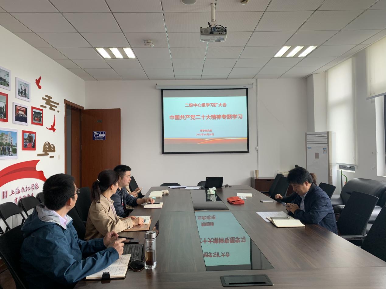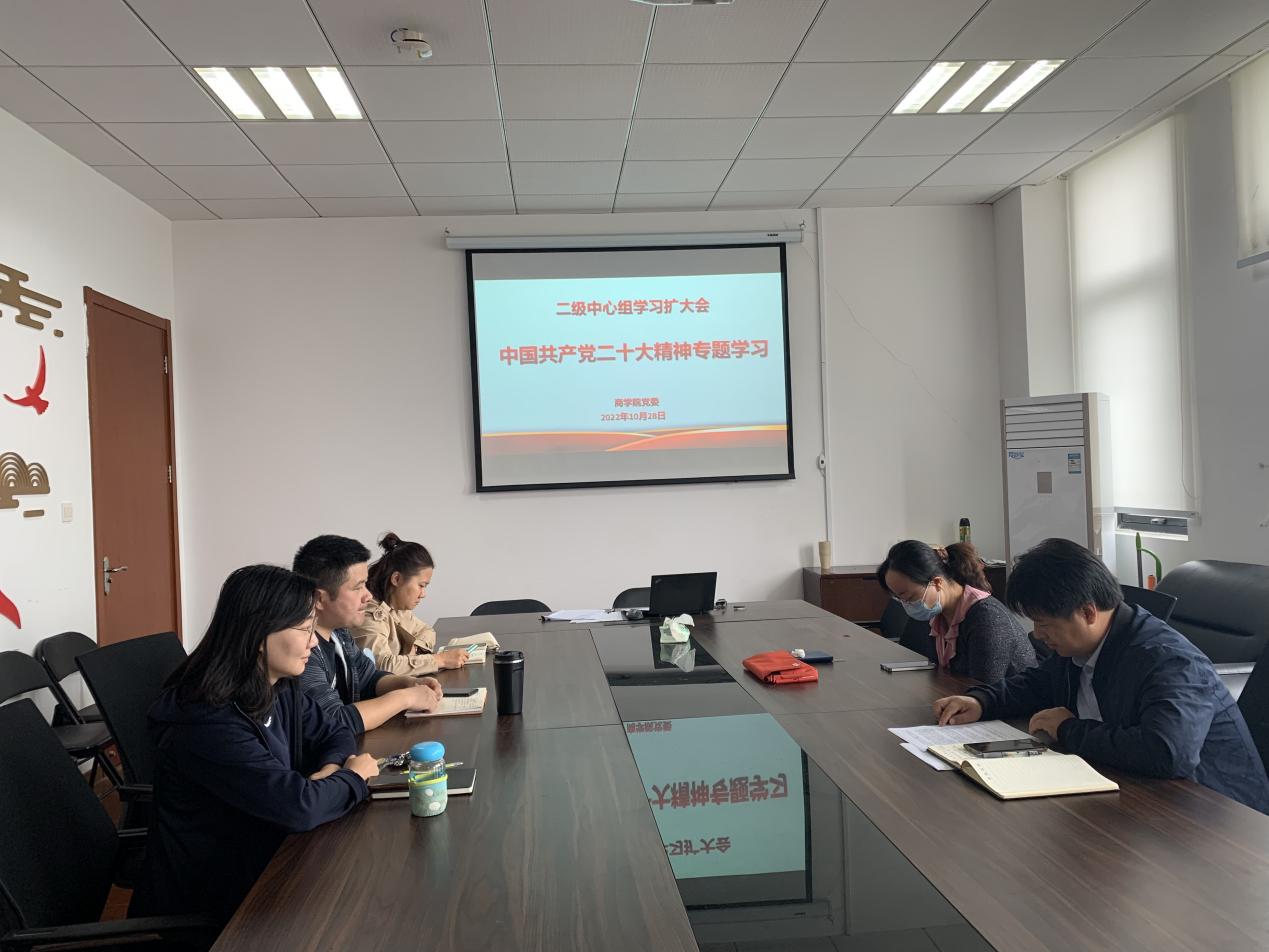 10月28日上午,pa电子官方网站党委于商院楼502会议室召开二级中心组学习扩大会,专题学习党的二十大会议精神。pa电子官方网站党政班子成员、党委委员、支部书记代表等参会,pa电子官方网站党委书记金辉主持学习会。