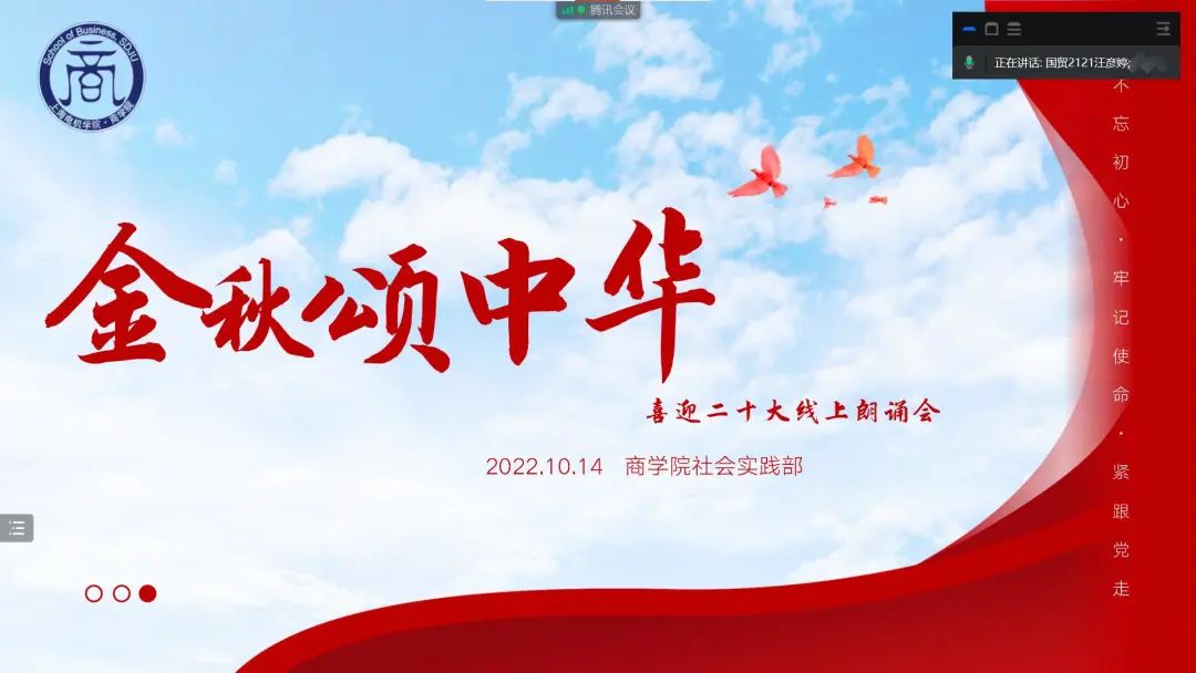 据悉,为迎接党的二十大胜利召开,pa电子官方网站师生主动谋划、积极作为,本月已举办了“校园采访”“线上朗诵——金秋颂中华”及“奔跑沐阳光—迈向新征程”等多项活动,以实际行动为党的二十大胜利召开献礼!