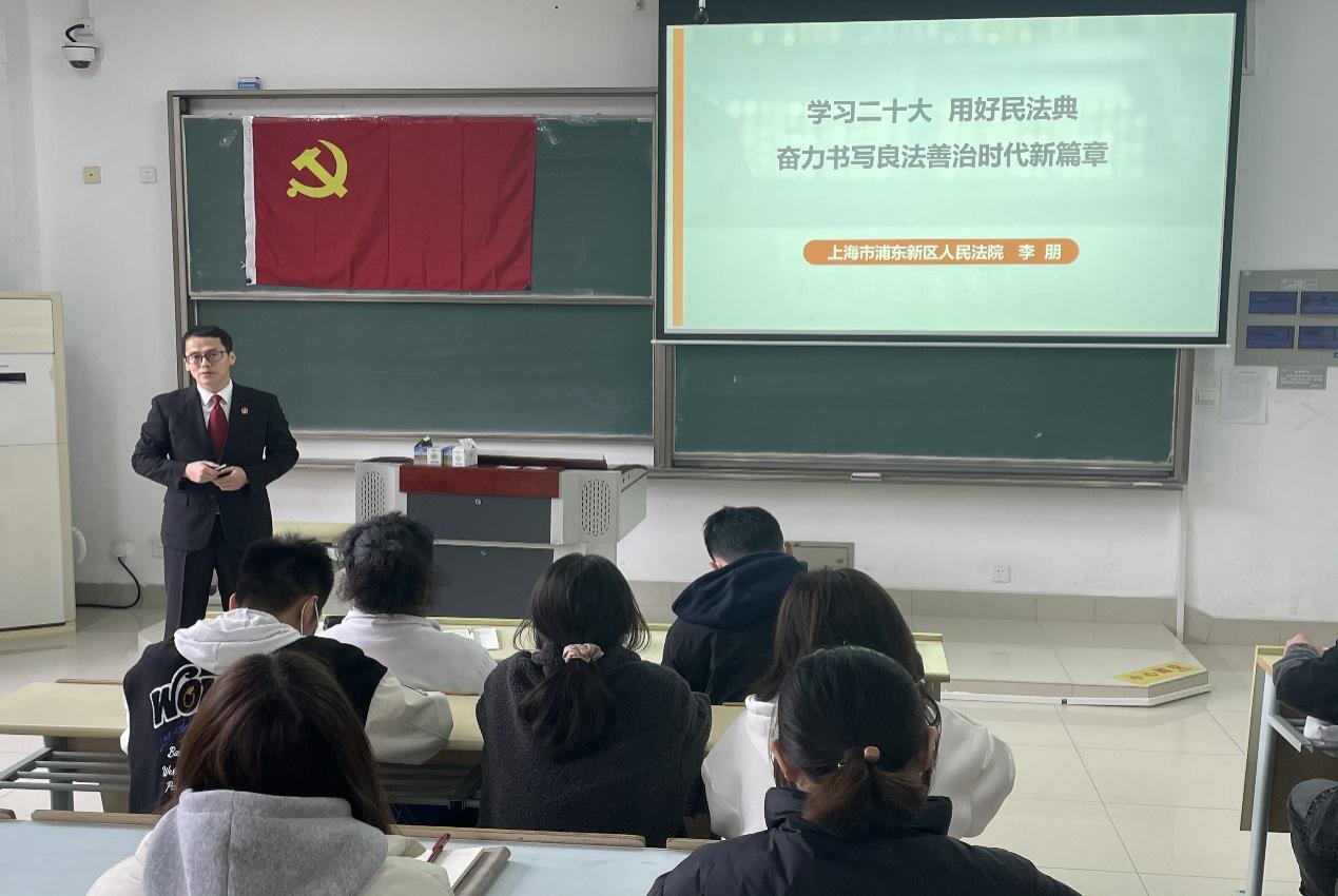 在临港校区,浦东新区人民法院李朋法官《学习二十大 用好民法典 奋力书写良法善治新篇章》为题开展第一讲李朋法官结合丰富时事案例,向学员们详细介绍了民法典的内容提升了学员们的法治思维和法治意识
