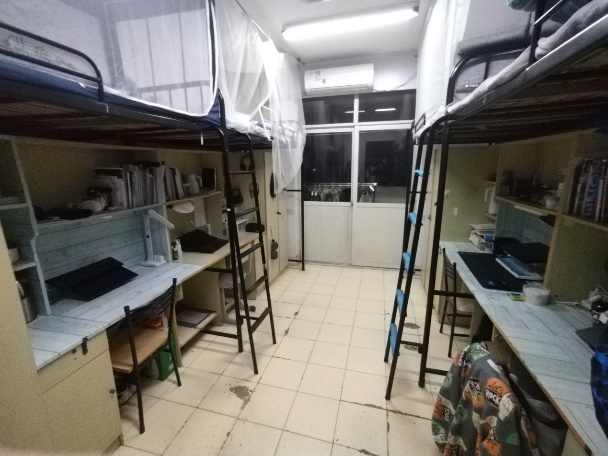 寝室口号:休,于此。劳,于此。习,于此。成,于此。